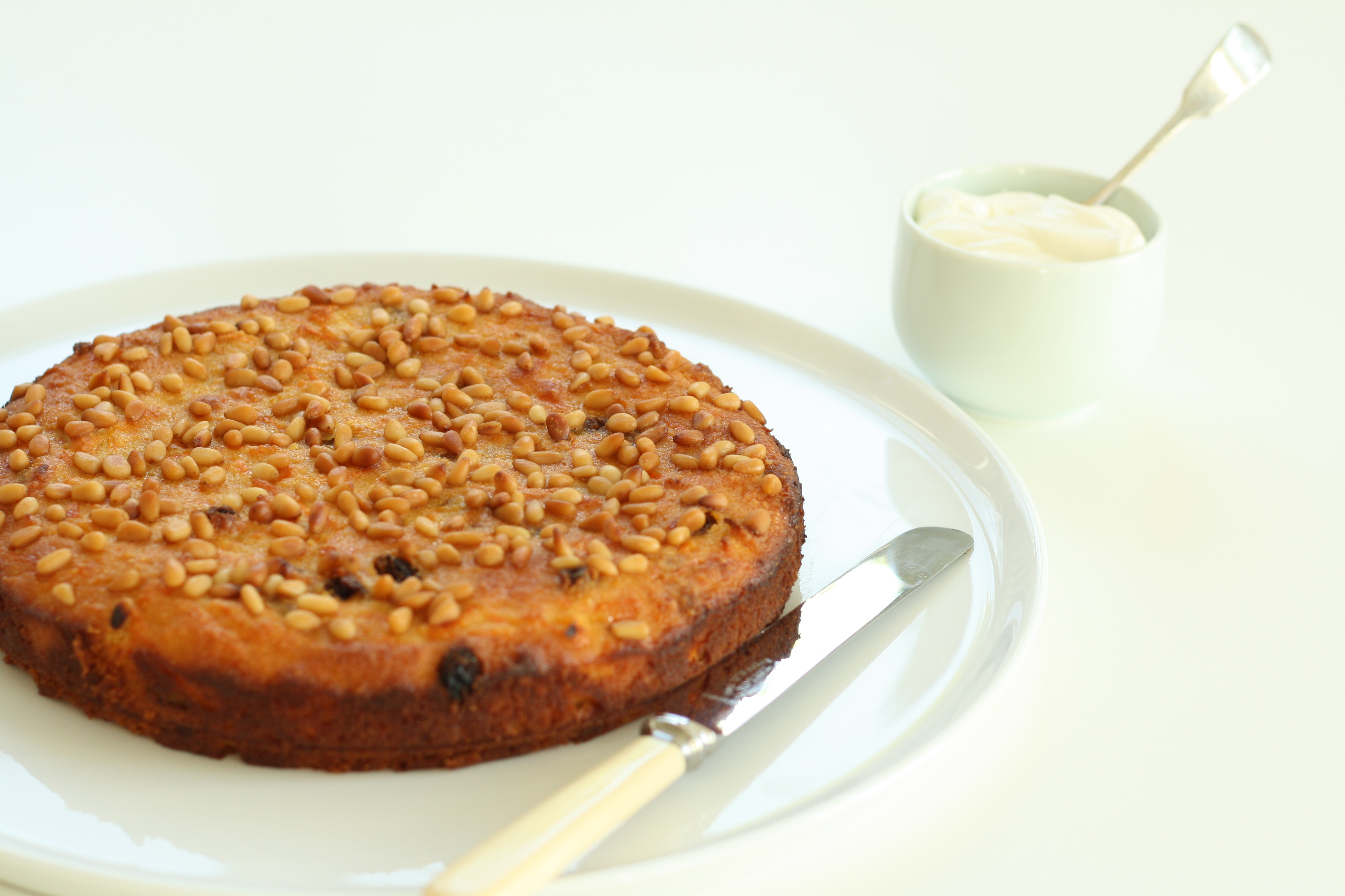 Add the eggs and vanilla and whisk again. Then fold in the almonds, nutmeg, carrots, sultanas (with any rum that sticks to them) and the lemon zest and juice. Pour the mix into the prepared tin and level it off with a spatula. Sprinkle over the pine nuts and pop the tin in the oven for 30-40 mins. You’ll know the cake is ready when it’s lightly golden and a skewer inserted into the middle comes out relatively clean.