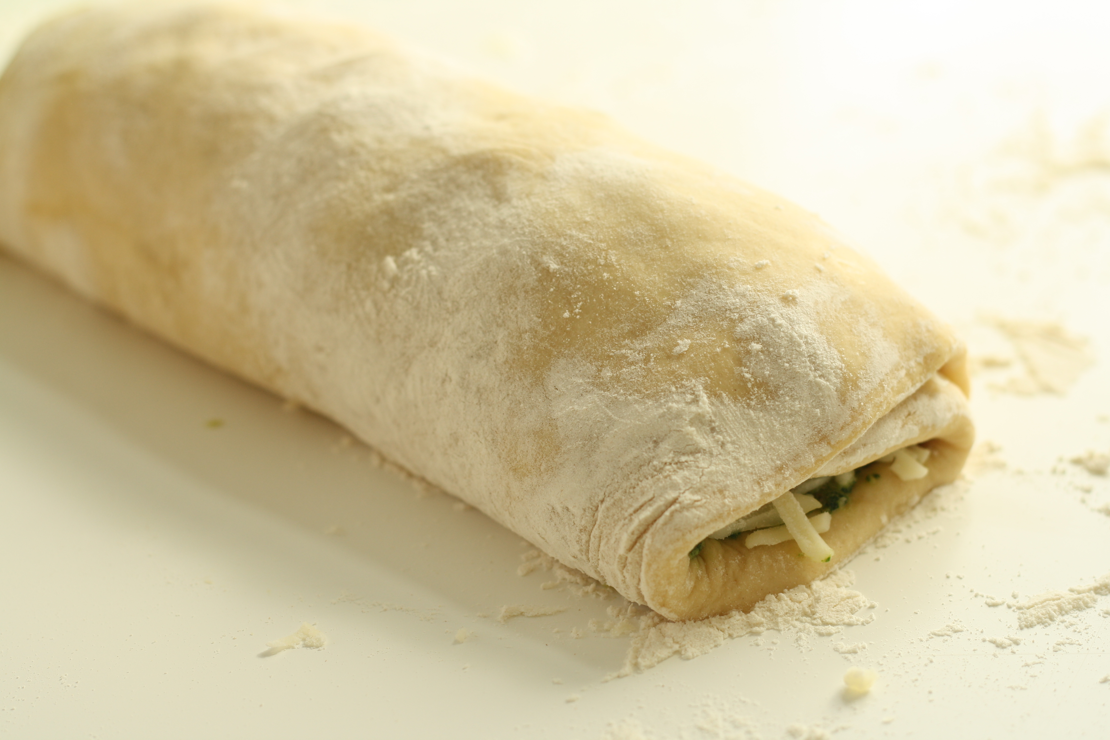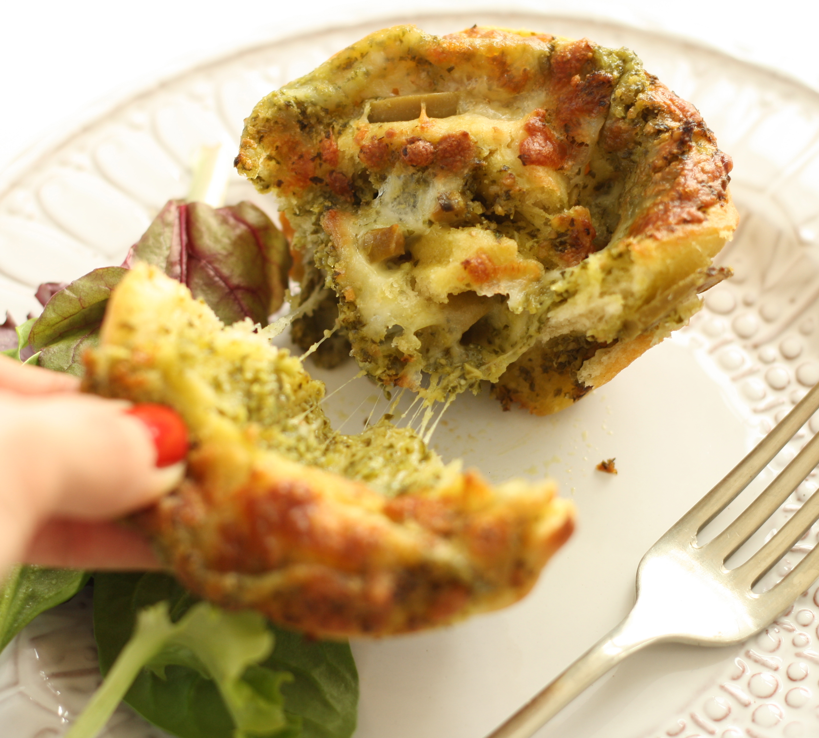 Kale Pesto, Olive & Mozzarella Pizza Rolls