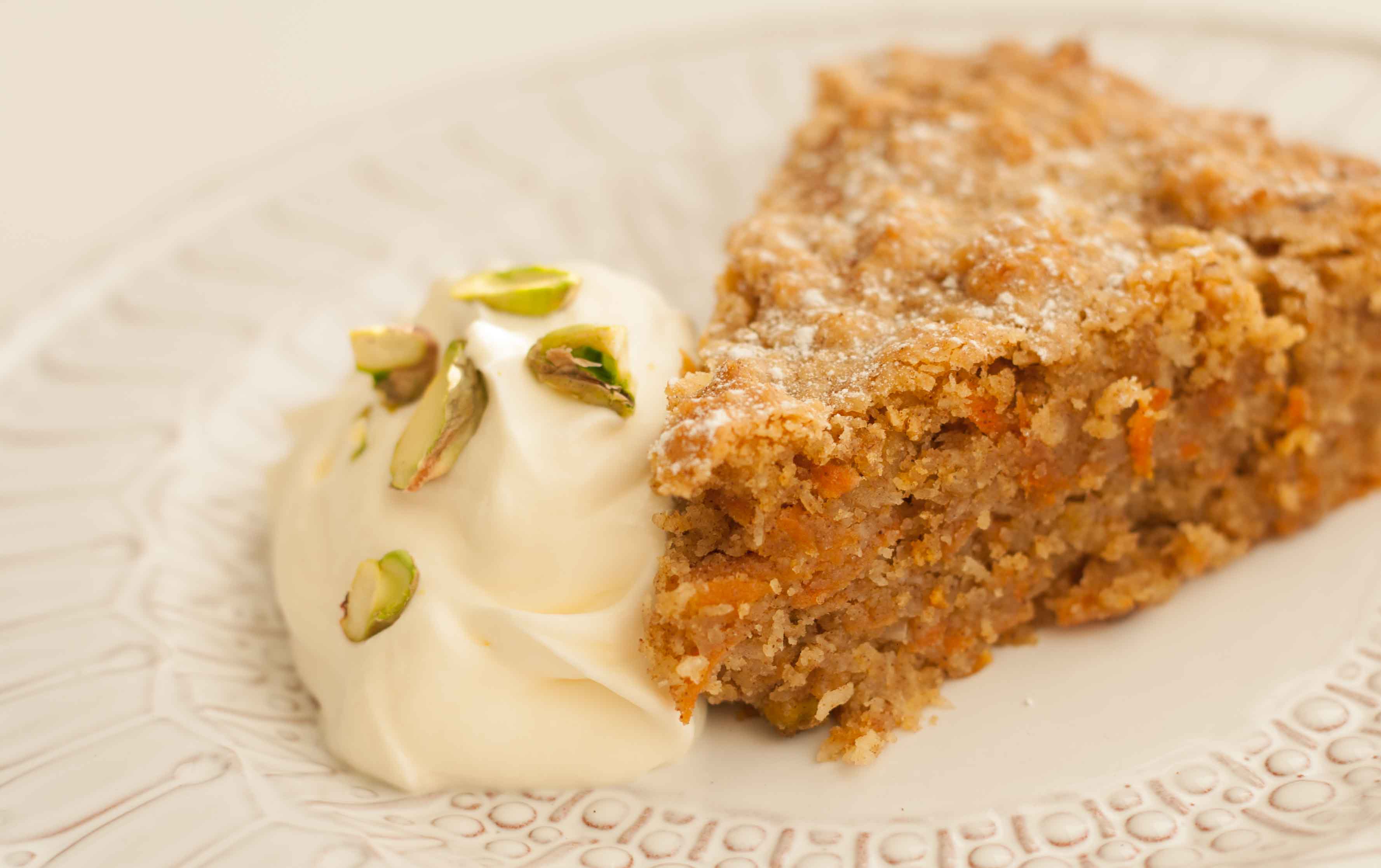 Gluten-Free Carrot, Almond & Pistachio Cake with Rosewater Cream